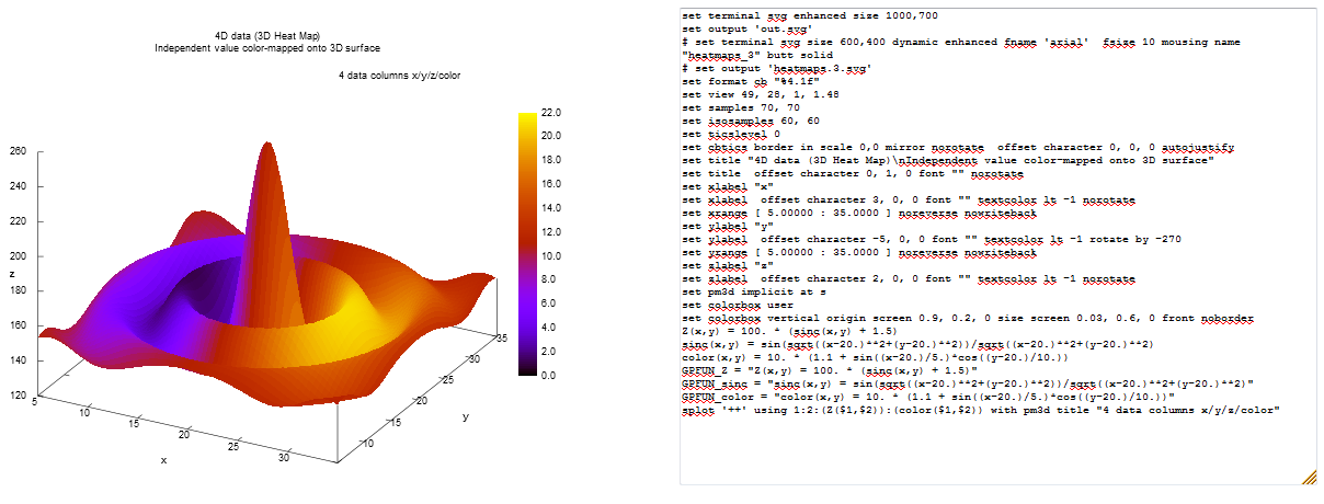 グラフが表示されるまでものによっては時間がかかるものの、gnuplotの一通りの機能が使えるようだ。